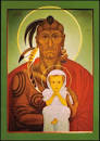While the icon shows them together, they were not, and certainly not baptized together. “On August 13, 1587, Manteo was baptized, the first recorded baptism of the Church of England in the American colonies and the first recorded baptism of a Native American person in the Church of England. On August 18, Governor White’s daughter Eleanor and her husband Ananias Dare celebrated the birth of their first child, Virginia. The first child born to English settlers on the North American continent, Virginia’s baptism on August 20 was the second recorded baptism in the Church of England in North America.” (Great Cloud of Witnesses for August 17)